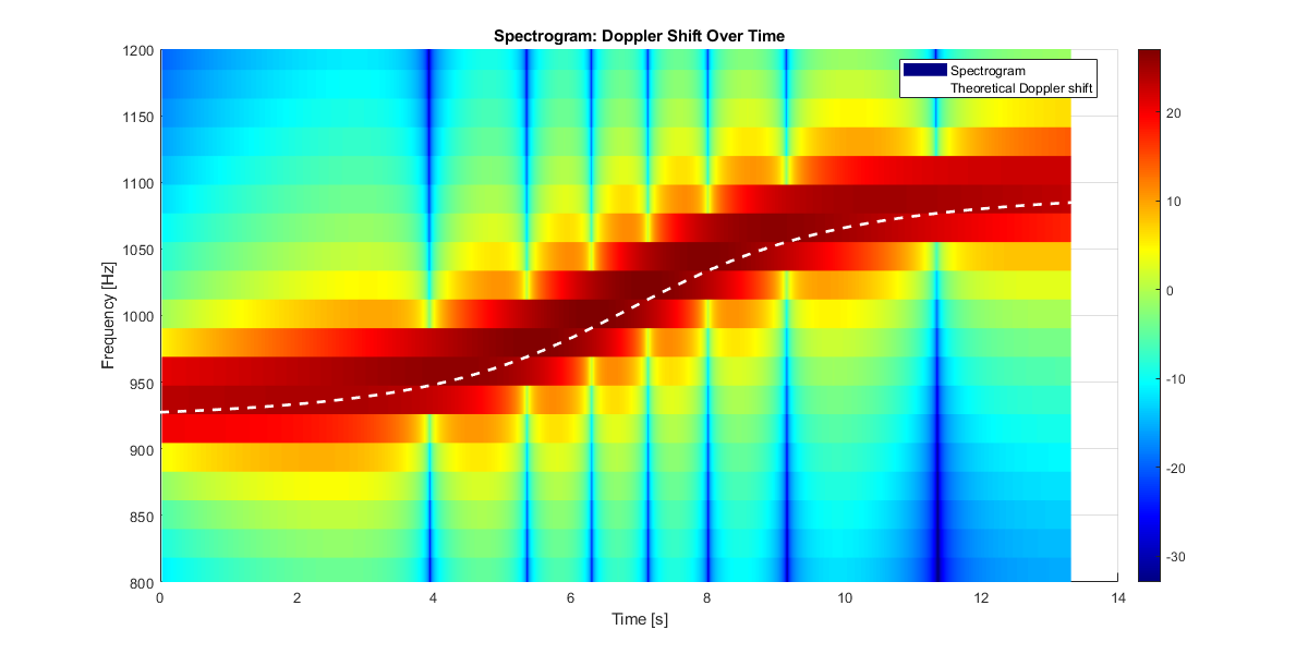 Die FFT ermöglicht es uns, die zeitlich veränderliche Frequenz eines Signals sichtbar zu machen. Im Spektrogramm ist zu erkennen, wie sich die Frequenz der Sirene über die Zeit ändert - von anfangs ~930 Hz (Annäherung) über 1000 Hz (Vorbeifahrt) bis ~1080 Hz (Entfernung). Ohne FFT könnten wir diese Frequenzänderung im Zeitsignal nicht direkt ablesen und auswerten.