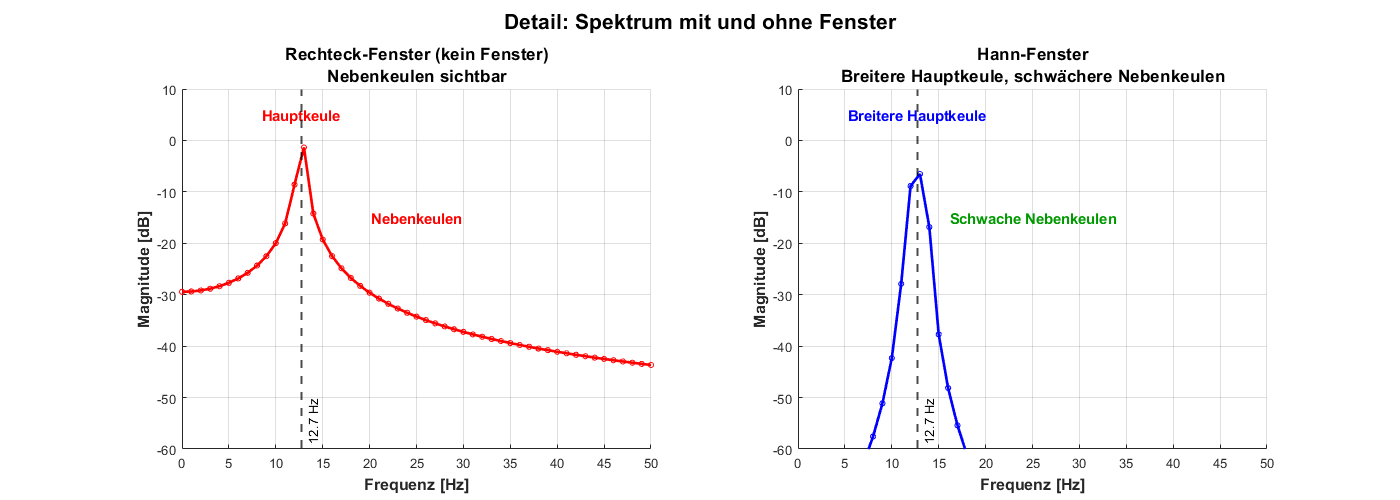 Wichtig: Eine feinere Auflösung erreicht man durch längere Messdauer \(T\) oder eine größere Anzahl Samples \(N\) (bei gleichem \(f_s\)).